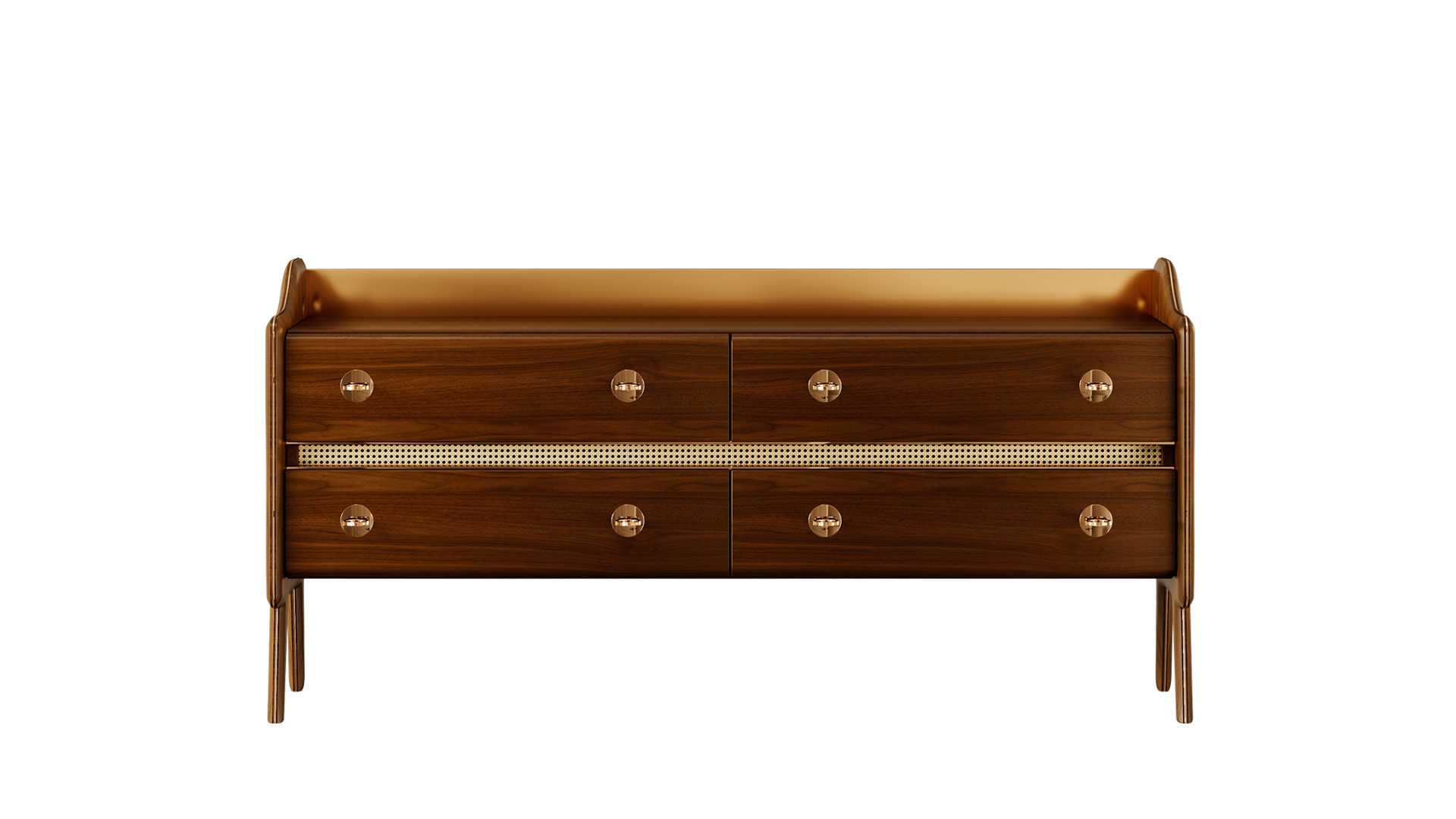 The Lester sideboard draws inspiration from the vintage classics, yet interpreted with a modern vision. The four drawers feature a simple design, where the handles shine, while the main structure brings back the mid-century through its attractive lines.