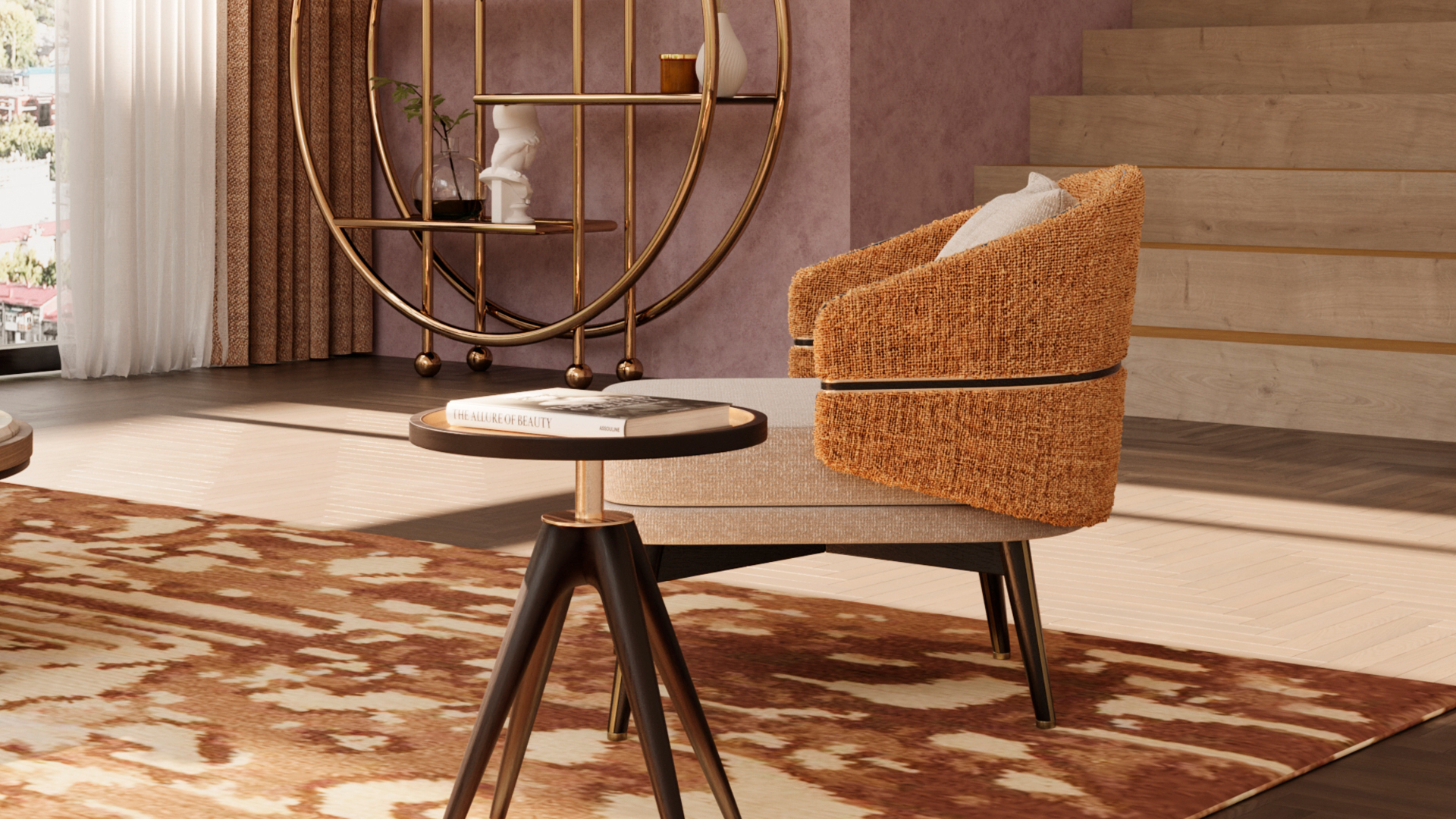 Billy Armchair delivers ultimate comfort to the interior, brought by the soft fabric covering the generous seat and the cushion. The round backrest with an asymmetric look, and featuring an alluring design, envelopes gently the body.