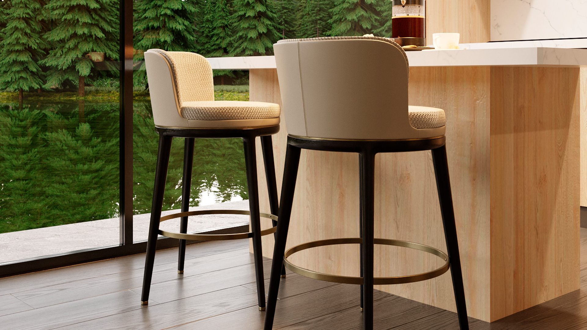A comfortable backrest that perfectly adapts to the body. The Hicks Bar Stool has a charming upholstered shape that is carefully protected by the second layer in an alluring leather.