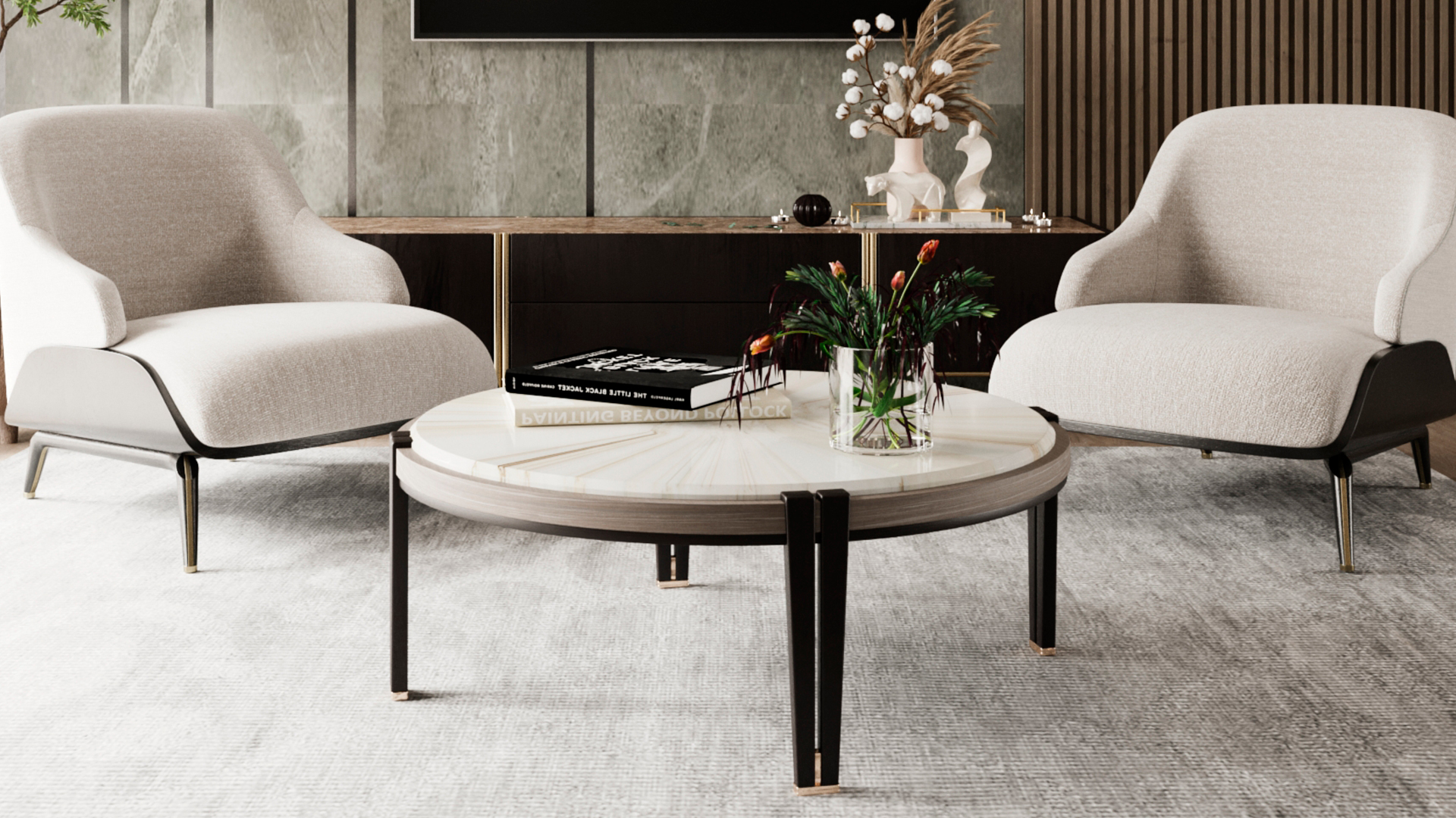 The elegance of the Mary Center Table echoes in its shape and materials. Simple yet sophisticated, the generous silhouette fuses with the marble nobility, contrasting with wood in different colors. Its presence will bring luminosity to any living room design.