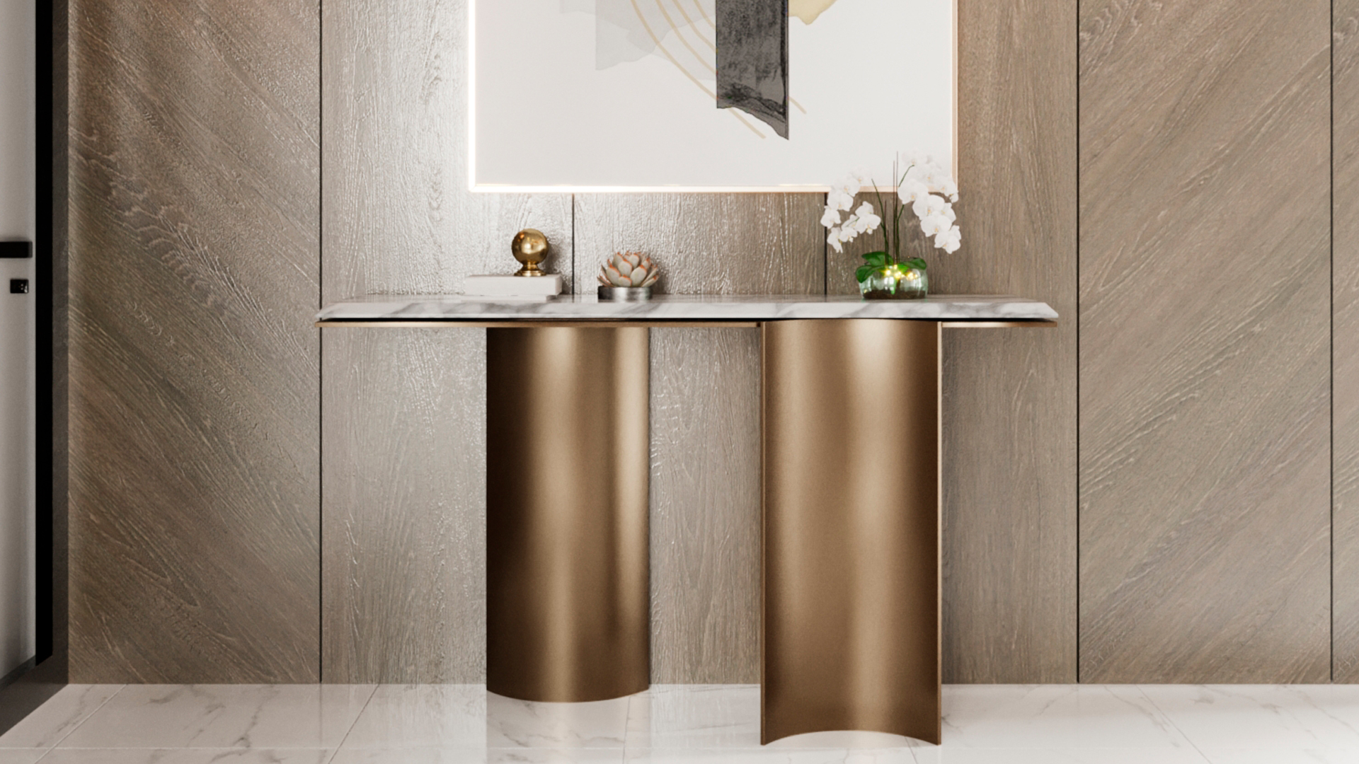 From the blend of metal and marble, the Fusion Console was created. Inspired by the method of reshaping metal by heat, this unique shape masterpiece arises. This exclusive console is the ideal complement to the most luxurious interior design projects.