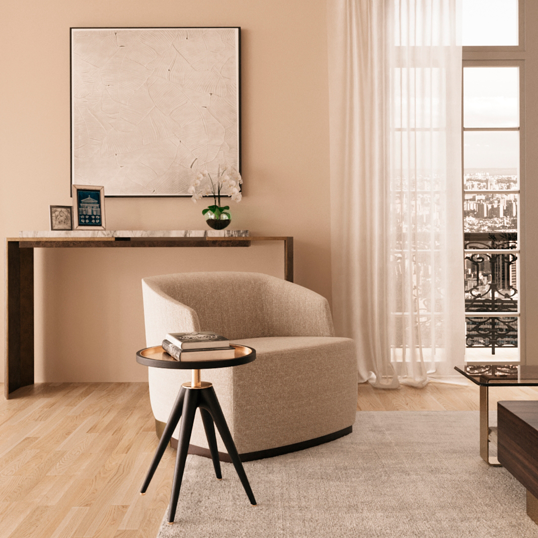 Challenging the physics expectations, the Absolute Side Table creates an intrinsic harmony between the rich walnut veneer and the polished brass details. These two materials were welded together to set a contrast that defies the eye perspective. Thought to complement any modern living room.